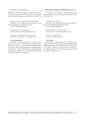 16. Быстрых А. В., Высоцкая Е. И. Оксюморон по форме и содержанию: дискурсивные механизмы пассивной агрессии // Вестник Воронеж, гос. ун-та. Сер.: Лингвистика и межкультурная коммуникация. 2020. № 4. С. 28-36.