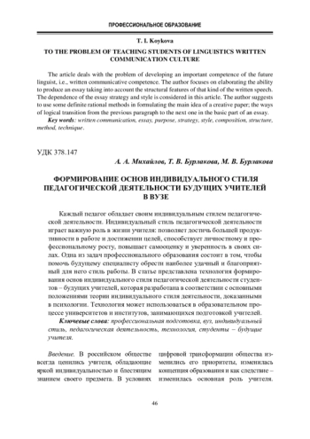 5. Гутрова Ю. В., Николов Н. О., Тетина С. В. Рассмотрение смыслов понятия «индивидуальный педагогический стиль деятельности учителя» // Интеграция методической (научно-методической) работы и системы повышения квалификации кадров : материалы XXIII Междунар. науч.-практ. конф., Челябинск, 20 апр. 2022 г. Челябинск : ЧИППКРО, 2022. С. 15 - 21.