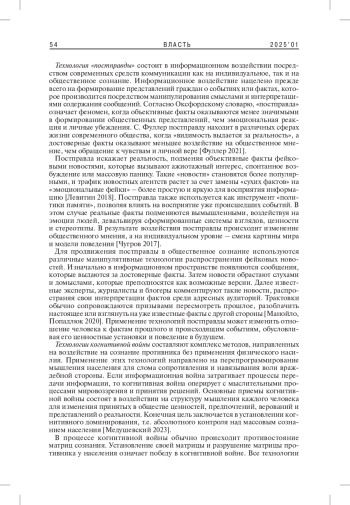6. Медушевский А.Н. 2023. Когнитивная война: социальный контроль, управление сознанием и инструмент глобального доминирования. Ч. 1. - Вопросы теоретической экономики. № 2. С. 85-98. EDN: RBPICM