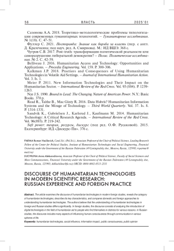 10. Сазонова А.А. 2017. Гуманитарные технологии как теоретический концепт: основные подходы. - Исторические, философские, политические и юридические науки, культурология и искусствоведение. Вопросы теории и практики. № 3(77). C. 126-128.