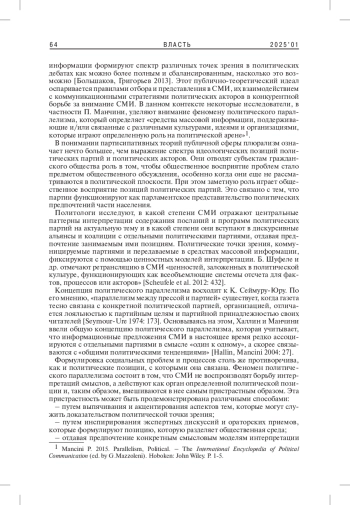 ЕРЕМЕЕВ С. Г., СЕРАВИН А. И. ПОЛИТИЧЕСКИЙ ПАРАЛЛЕЛИЗМ В УСЛОВИЯХ ПЛЮРАЛИЗМА МНЕНИЙ И ЦИФРОВИЗАЦИИ ПУБЛИЧНОЙ СФЕРЫ // ВЛАСТЬ. 2025. ТОМ 33 № 1