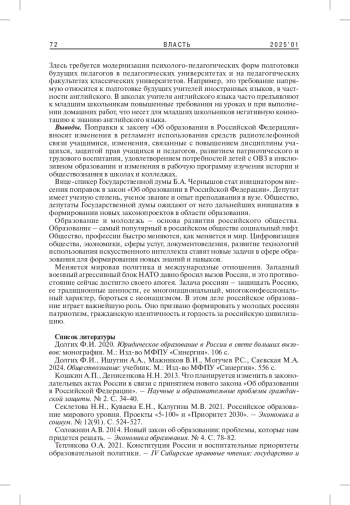 1. Долгих Ф.И. 2020. Юридическое образование в России в свете больших вызовов: монография. М.: Изд-во МФПУ “Синергия”. 106 с. EDN: ZNAMJI
