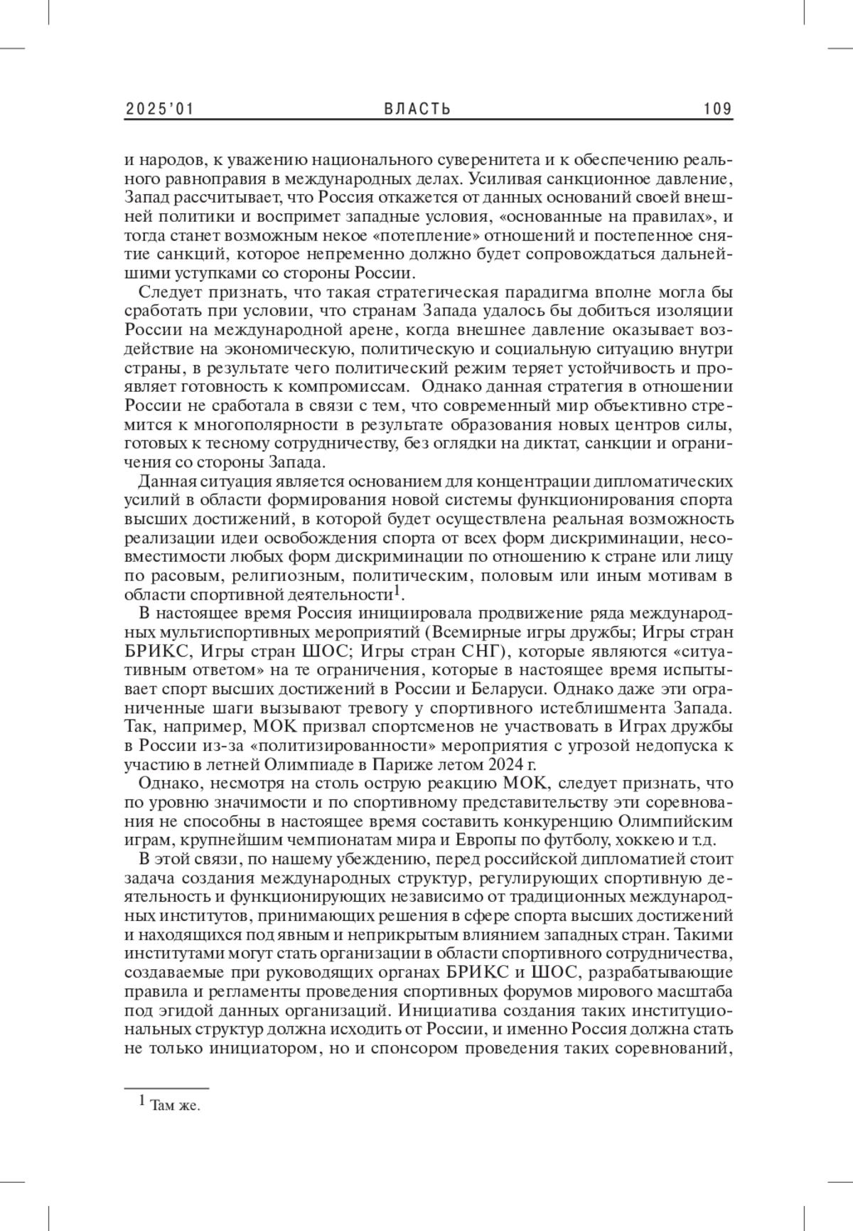 3. Вдовин А.Н., Кузьмин В.Г. 2021. Спорт и политика в международных отношениях. - Ученые записки университета им. П.Ф. Лесгафта. № 12(202). С. 68-72. EDN: HAKIOJ