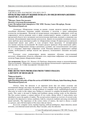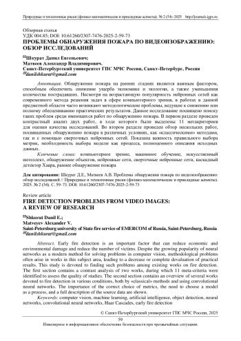 22. Xuan Truong T., Kim J.-M. Fire flame detection in video sequences using multi-stage pattern recognition techniques // Engineering Applications of Artificial Intelligence. 2012. Vol. 25. № 7. P. 1365–1372. DOI: 10.1016/j.engappai.2012.05.007.