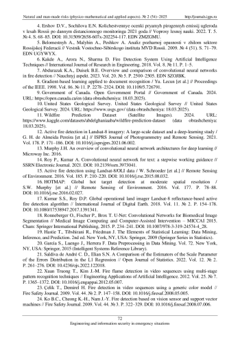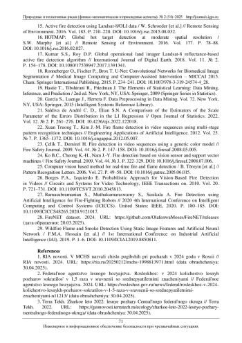 12. Active fire detection in Landsat-8 imagery: A large-scale dataset and a deep-learning study / G. H. de Almeida Pereira [et al.] // ISPRS Journal of Photogrammetry and Remote Sensing. 2021. Vol. 178. P. 171–186. DOI: 10.1016/j.isprsjprs.2021.06.002.