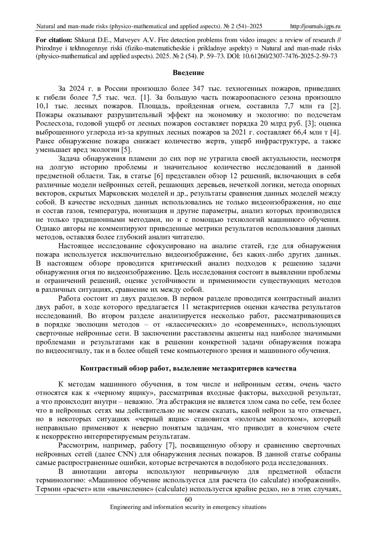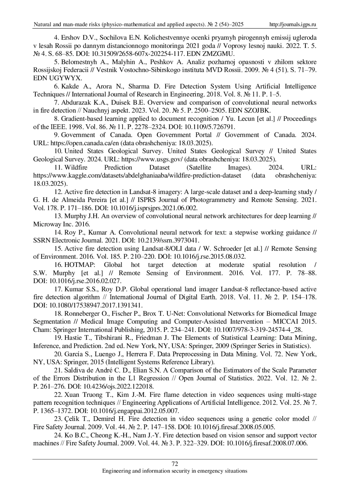 7. Abdurazak K.A., Duisek B.E. Overview and comparison of convolutional neural networks in fire detection // Научный аспект. 2023. Vol. 20. № 5. P. 2500–2505. EDN SZOJBK.