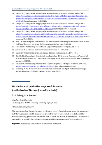 19. Schröder M. Wortbildung der deutschen Gegenwartssprache. Tübingen: Niemeyer, 2007. URL: https://www.goethe.de/ins/ru/ru/kul/ser/onl.html (Дата обращения 24.05.2023).