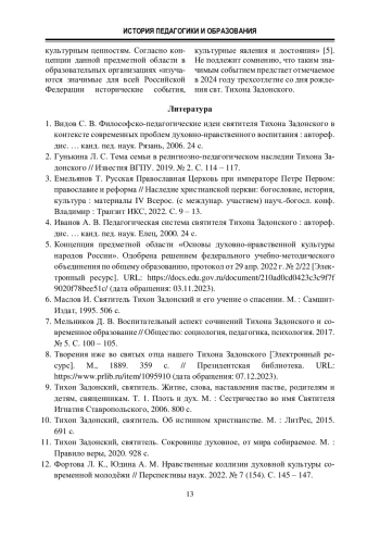 7. Мельников Д. В. Воспитательный аспект сочинений Тихона Задонского и современное образование // Общество: социология, педагогика, психология. 2017. № 5. С. 100 - 105.