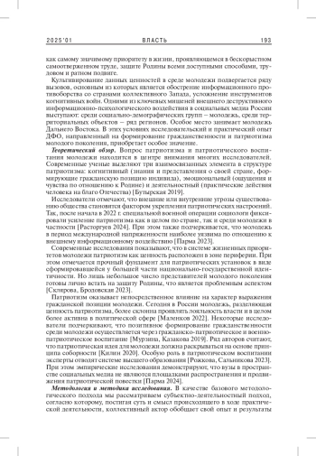 7. Парма Р.В. 2024. Продвижение патриотической повестки в социальных медиа среди российской студенческой молодежи. - Высшее образование в России. Т. 33. № 1. С. 44-67. EDN: LLCBSO