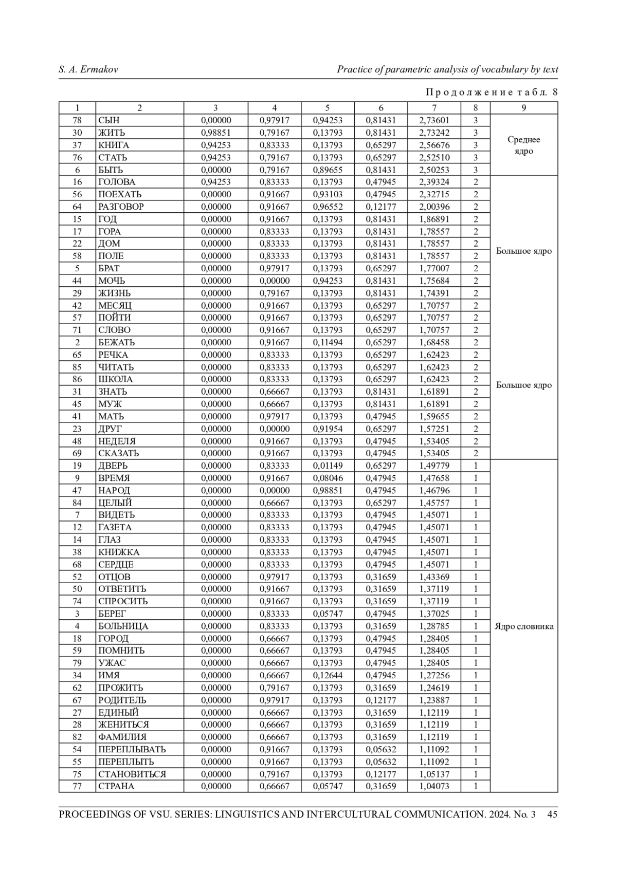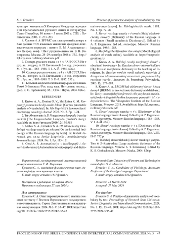 1. Кретов А. А., Донина О. В., Шилихина К. М. Корпусный параметрический анализ лексики // Мир лингвистики и коммуникации. 2022. № 2. С. 1-24. EDN: VFUCYJ
