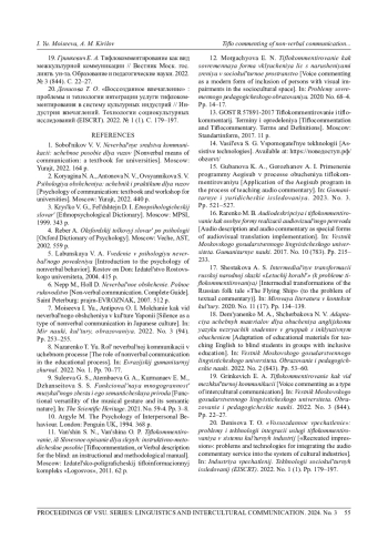 19. Гринкевич Е. А. Тифлокомментирование как вид межкультурной коммуникации // Вестник Моск. гос. лингв. ун-та. Образование и педагогические науки. 2022. № 3 (844). С. 22-27. EDN: NSDGST
