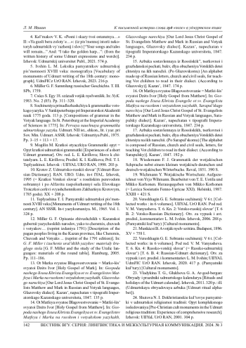 5. Ившин Л. М. Лексика памятников удмуртской письменности XVIII века: монография. УдмФИЦ УрО РАН. Ижевск, 2023. 216 с. EDN: GUOQXO