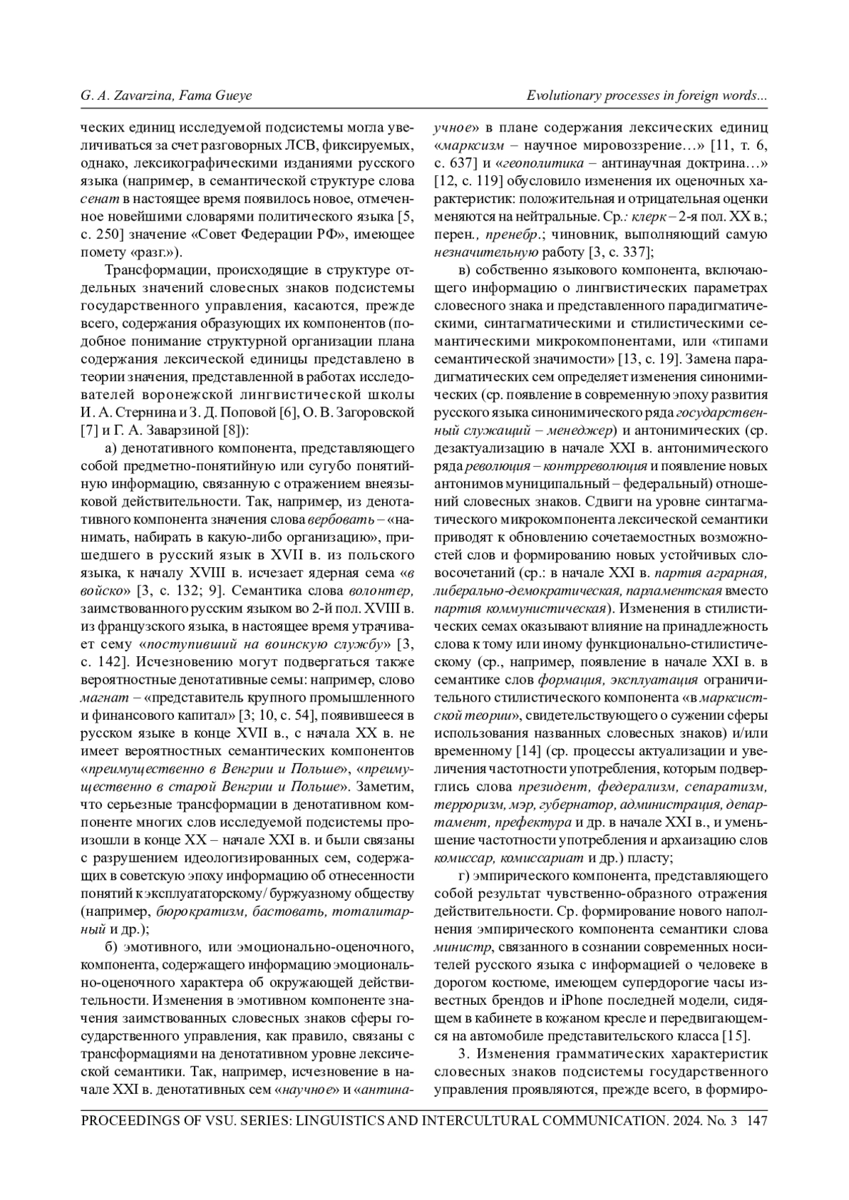 14. Заварзина Г. А. Процессы неологизации в лексической подсистеме тематической сферы “государственное управление” в современном русском языке // Язык и культура. 2014. № 1 (25). С. 14-21.