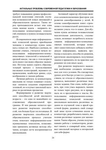 3. Сердюк Н. И. Информационно-коммуникативные технологии в образовательном процессе как средство развития творческих способностей младших школьников. URL: https://infourok.ru/statya-informacionno-kommunikativnyetehnologii-v-obrazovatelnom-processe-kak-sredstvo-razvitiya-tvorcheskih-sposobnostej-mladsh-4661689.html (дата обращения: 12.09.2024).