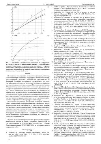 10. Олейник Э.Ф., Руднев С.Н., Саламатина О.Б. Ступенчатый механизм зарождения пластической деформации в стеклообразных полимерах // Доклады Академии наук. Федеральное государственное бюджетное учреждение “Российская академия наук”, 2015. Т. 465, №1. С. 46-46.