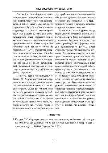 1. Гагарин С. С. Формирование готовности студентов вузов физической культуры к воспитательной деятельности на основе идей олимпизма : автореф. дис. ... канд. пед. наук : 13.00.08. Саратов, 2010. 22 с.