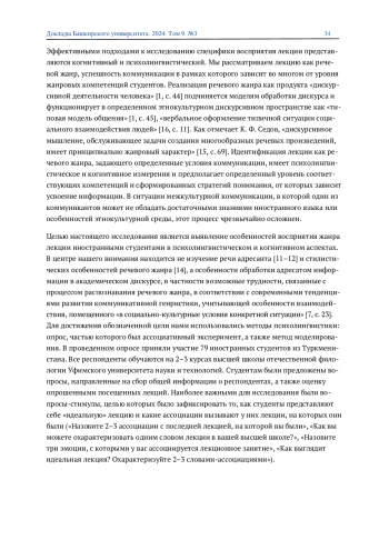 В статье представлен анализ данных опроса иностранных студентов с целью выявить когнитивные и психолингвистические особенности восприятия респондентами жанра лекции. Результаты опроса позволяют утверждать, что многие студенты-иностранцы не имеют четкого представления о лекции как особой форме организации коммуникации, а потому испытывают трудности при выстраивании эффективной стратегии обработки дискурса. Отмечается, что необходимо знакомить иностранных студентов с форматами обучения, помогать им сформировать правильные коммуникативные установки.