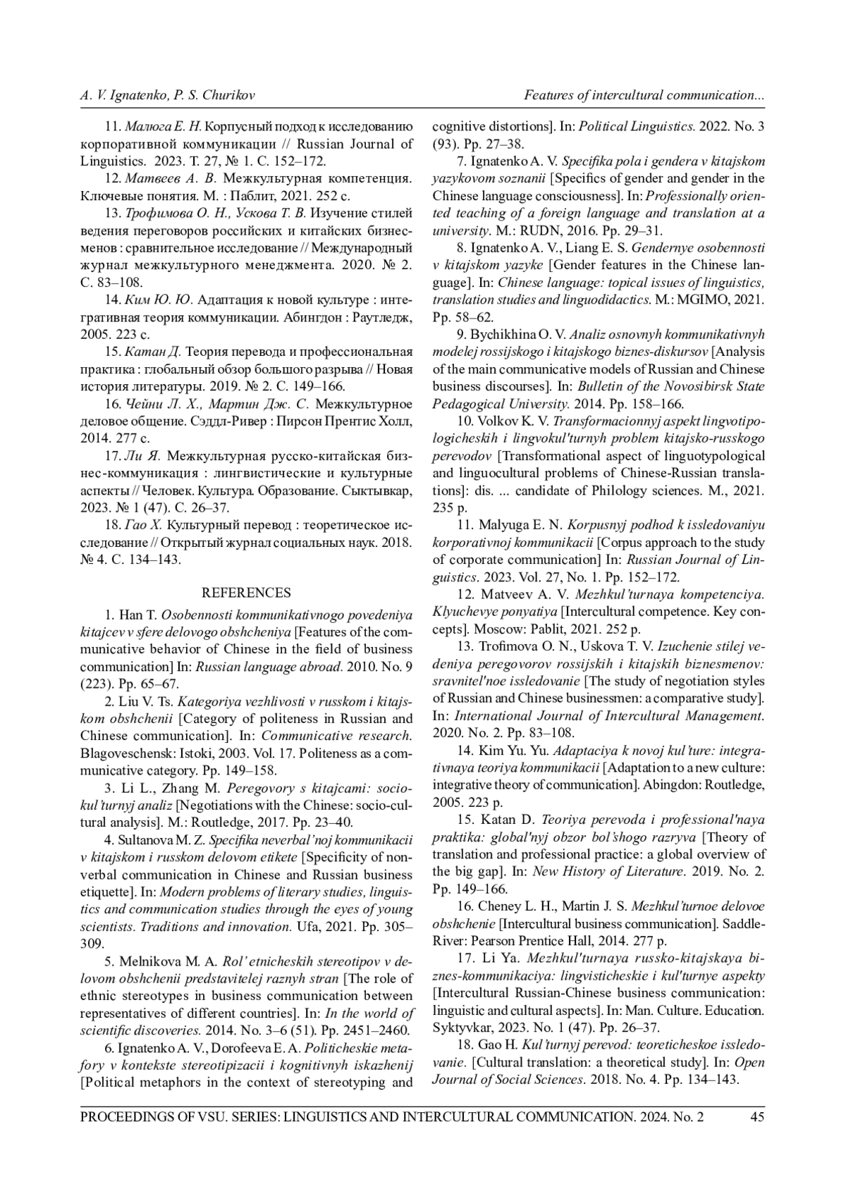 17. Ли Я. Межкультурная русско-китайская бизнес-коммуникация: лингвистические и культурные аспекты // Человек. Культура. Образование. Сыктывкар, 2023. № 1 (47). С. 26-37.