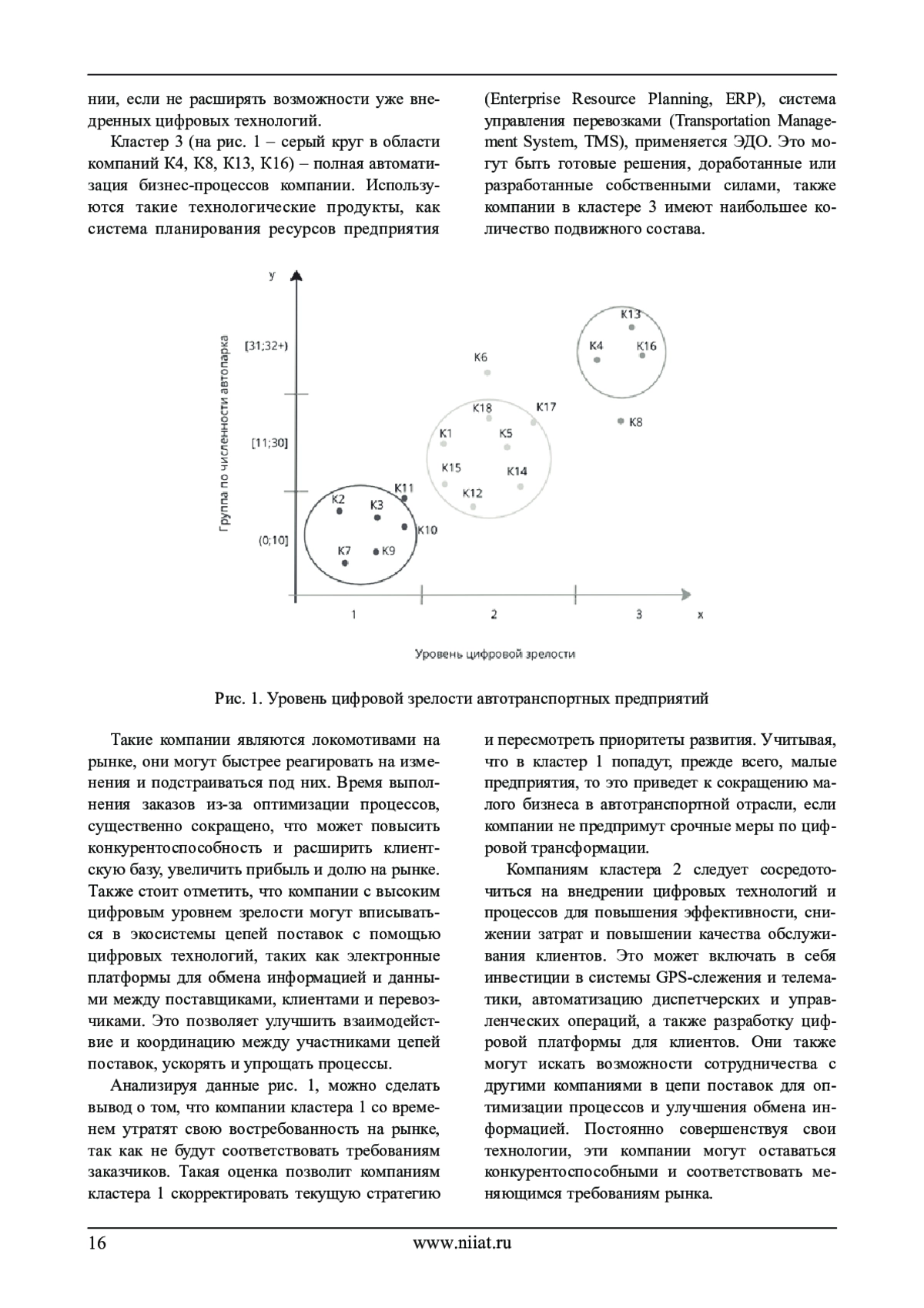 Ключевые фразы: цифровая зрелость предприятия, индекс цифровизации, цифровая транс- формация автотранспортных предприятий