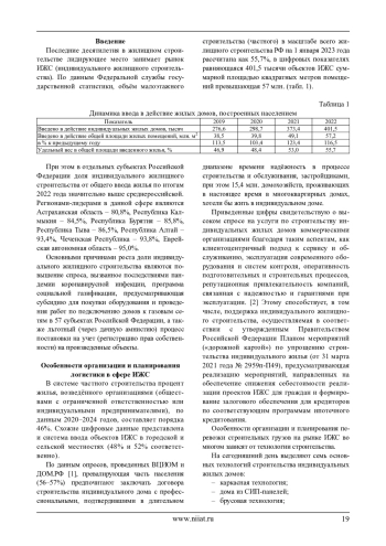 В настоящей статье проводится анализ актуальных проблем логистики в области индивидуального жилищного строительства, существующих в настоящее время. В исследовании выделены и проанализированы основные проблемы, связанные с управлением транспортировкой материалов, координацией рабочей силы. Результаты исследования позволяют выявить факторы, влияющие на эффективность логистики данной сфере и предложены рекомендации для её развития.
