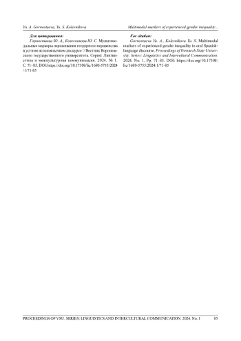 Статья посвящена проблеме выявления мультимодальных маркеров переживания гендерного неравенства в устном испаноязычном дискурсе о феминизме. Актуальность проблематики обусловлена распространением гендерных исследований, а также появлением целого ряда работ, в центре внимания которых находятся мультимодальные маркеры разного рода языковых и неязыковых процессов. Исследование характеризуется научной новизной в силу его мультимодальной направленности, подразумевающей возможность диагностировать специфику переживания гендерного неравенства испаноязычными мужчинами и женщинами посредством мультиканальных маркеров. Цель работы - выявление мультимодальных маркеров переживания гендерного неравенства в испаноязычном дискурсивном пространстве и описание их гендерной специфики. В качестве материала для анализа используются видео мексиканской программы «Sororidad» общей продолжительностью 150 минут, а также нарративные видеоинтервью с носителями испанского языка из Латинской Америки общей продолжительностью 160 минут. Работа осуществлена с помощью метода мультимодального анализа с применением системы для разметки мультимедийных данных ELAN. В ходе мультиканального аннотирования выделены 4 слоя с независимым типом разметки: «Слова», «Жесты», «Мимика», «Интонация». При обсуждении абстрактных проблем, связанных с феминизмом, у женщин преобладают жесты-лимитаторы и повышение громкости голоса, а мужчины предпочитают использовать жесты комфорта, интонацию перечисления, слово-связку como. При обсуждении негативных явлений, связанных с феминизмом, маркерами переживания гендерного неравенства у женщин стали финальный переспрос ino? и жесты-лимитаторы, а в мультимодальном поведении мужчин преобладают дискурсивные маркеры выражения персональной оценки и жесты комфорта, наблюдается также ускорение темпа речи. При обсуждении личного опыта, связанного с феминизмом, у женщин обнаружена тенденция к повышению громкости голоса и использованию интонации выделения, а у мужчин - к удлинению гласных звуков и использованию мимического движения «взгляд вниз». Для всех ситуаций обсуждения для женщин более характерны разнообразные и часто повторяющиеся мимические действия, интонационные явления и мануальные жесты. В женском дискурсе определены такие цепочки мультимодальных маркеров, как: 1) существительное mujer + жест «кавычки»; 2) жест «прижимает руку(-и) к груди» + интонационный маркер «повышение тона голоса». В мужском дискурсе: 1) жест «кавычки» + интонационный маркер «интонация выделения»; 2) жест «указывает прямой рукой в сторону» + интонационный маркер «повышение громкости голоса». Перспективна возможность расширения материала исследования, а также реализация более глубокого анализа фонетического слоя речи при помощи программного обеспечения Praat.