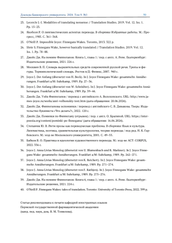 26. Slote S. Finnegans Wake, however basically translated // Translation Studies. 2019. Vol. 12. Iss. 1. Pp. 78-88.