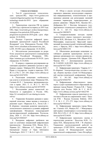 16. Цифровизация транспорта города Москвы / Силенко А.Н., Мажуга Н.С. // Международный журнал гуманитарных и естественных наук. 2024. № 4-3 (91). С. 45–51. https://www.elibrary.ru/ item.asp?id=67214630