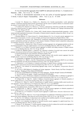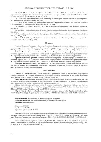 4. Bastidas-Martínez, J.G. Use of recycled concrete aggregates in asphalt mixtures for pavements: A review /j.G. Bastidas-Martínez, F.A. Reyes-Lizcano, H.A. Rondón-Quintana // Journal of Traffic and Transportation Engineering (English Edition). - 2022.