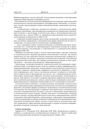 18. Холмская М.Р. 1999. Политическое участие как объект исследования. -Полис. Политические исследования. № 5. С. 170-176. EDN: ESCRPB