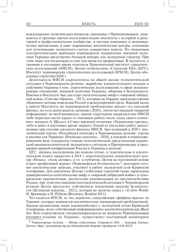 7. Курылев К.П., Гаврикова К.В., Поспелова Е.А. 2015. Экспертно-аналитические центры на Украине: характер и особенности. - Вестник Российского университета дружбы народов. Сер. Международные отношения. Т. 15. № 3. С. 99-109. EDN: VIOIET