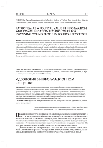 В статье рассматриваются факторы, отличающие базовые принципы формирования идеологии в информационном обществе, дается сравнение с аналогичными факторами, объективно присущими аграрному, индустриальному и постиндустриальному обществам. Автор отмечает, что в современных условиях очень редко идет учет различий этих факторов при попытках сформулировать ключевые постулаты идеологических концепций современного общества или при рассмотрении тенденций изменения идентичностей в информационных обществах.