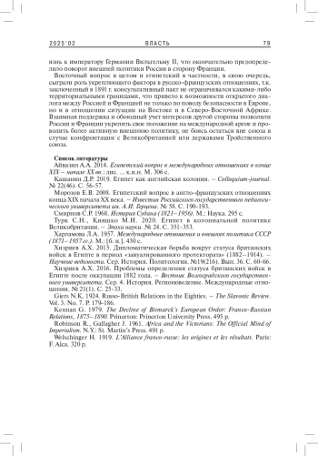 3. Морозов Е.В. 2008. Египетский вопрос в англо-французских отношениях конца XIX начала XX века. - Известия Российского государственного педагогического университета им. А.И. Герцена. № 58. С. 190-193. EDN: KNOLJH