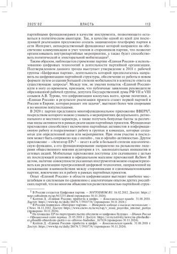 1. Ежов Д.А. 2024. Трансформация института политических партий в России в условиях цифровизации и виртуализации. - Социально-гуманитарные знания. № 10. С. 156-159. EDN: NSWZLP