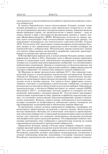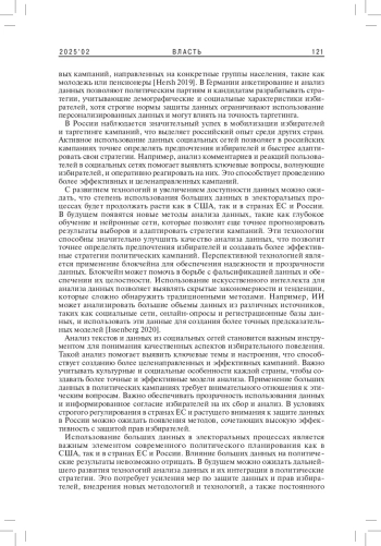Использование больших данных существенно изменило подходы к проведению избирательных кампаний в США, ЕС и России. В США политические штабы активно используют данные из социальных сетей, регистрации избирателей, демографические и экономические показатели.