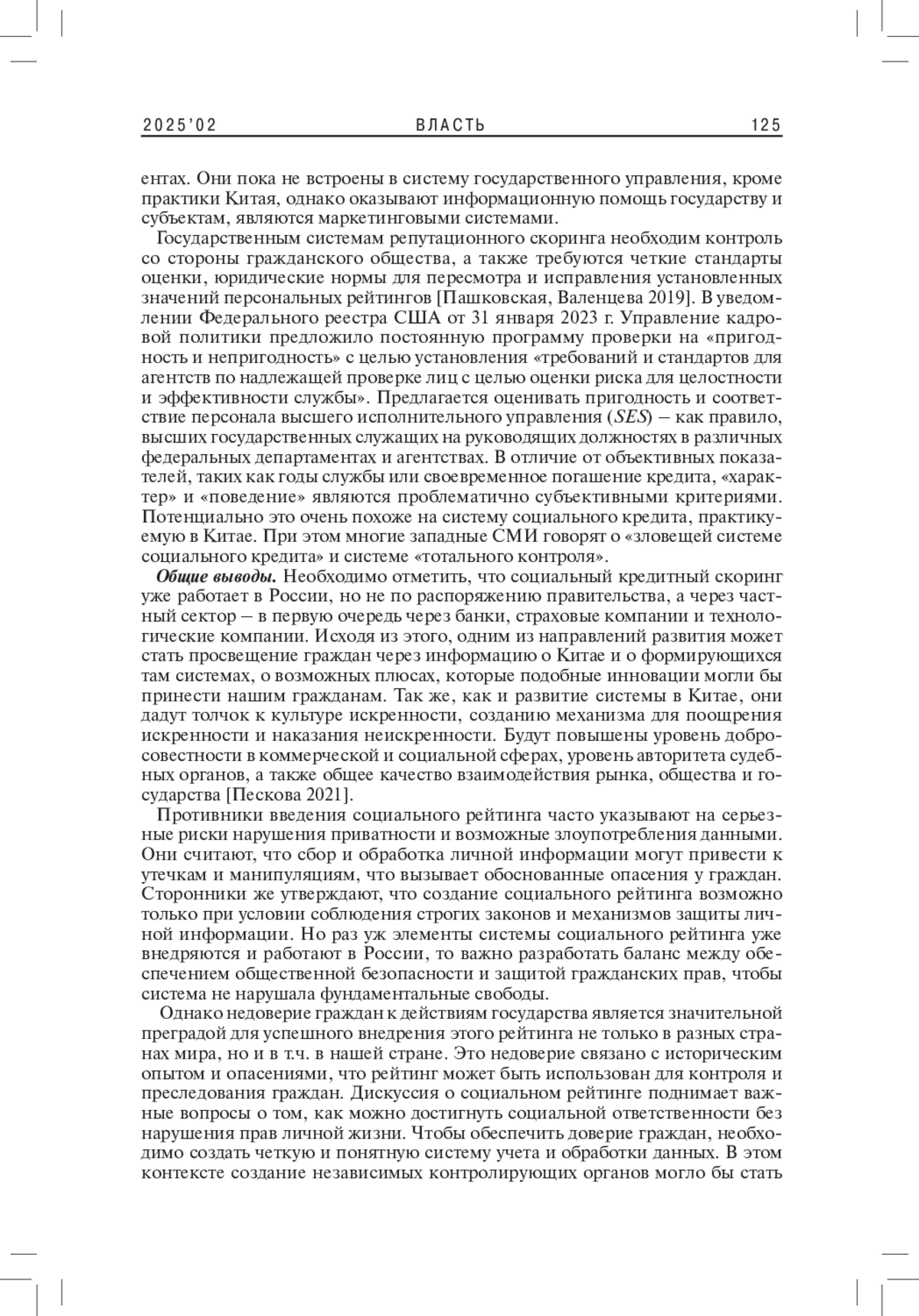 4. Пашковская И.В., Валенцева Н.И. 2019. Развитие системы репутационного скоринга на примере Китая и России. - Вестник евразийской науки. Т. 11. № 2. 11 с. EDN: ZZDCIX