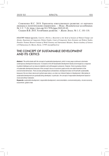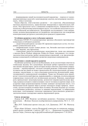 1. Левина Е.И. 2009. Понятие “устойчивое развитие”. Основные положения концепции. - Вестник Томского государственного университета. № 11. С. 113-119.