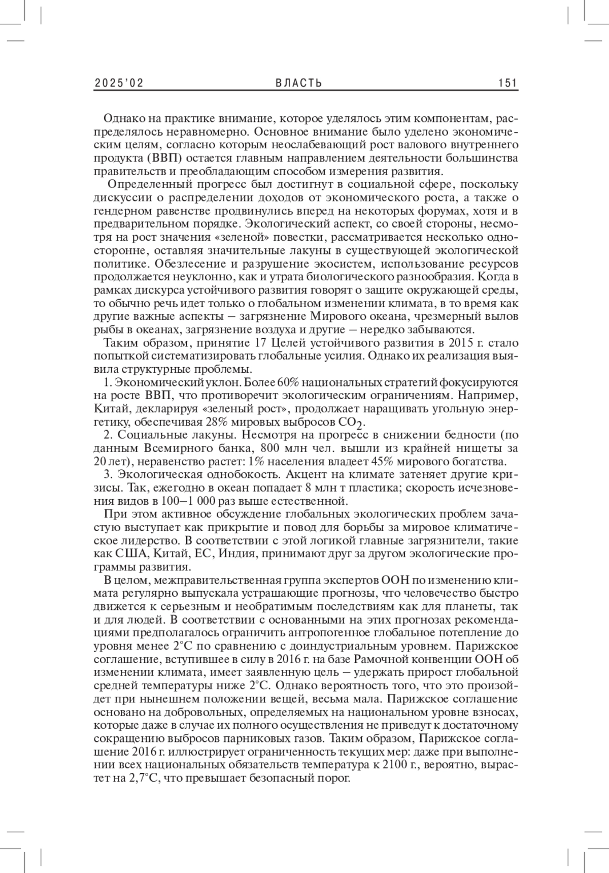 Статья посвящена рассмотрению концепции устойчивого развития, которая во многом продолжает доминировать в современном дискурсе о развитии. Последняя основана на Целях устойчивого развития ООН и возникла как ответ на глобальные вызовы, такие как исчерпание ресурсов и антропогенные нагрузки. Вместе с тем усиливается критика концепции устойчивого развития из-за того, что основное внимание в ней уделяется экономическим целям, а экологический аспект рассматривается односторонне. Имеются и философские противоречия: развитие плохо согласуется с устойчивостью из-за его нелинейного характера и циклически-волновой природы, поэтому кризисность является неотъемлемой чертой развития. Постепенно вырабатываются альтернативы устойчивому развитию, в частности концепция ответственного развития, опирающаяся на морально-нравственную мотивацию.