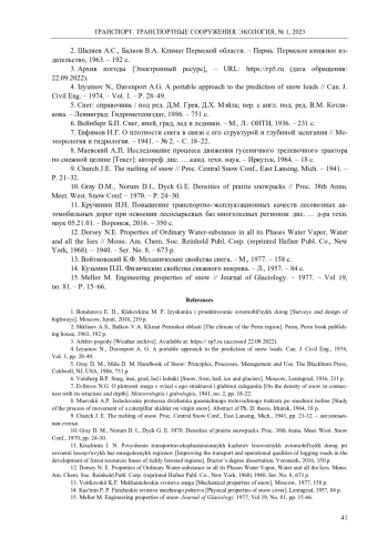 7. Евфимов Н.Г. О плотности снега в связи с его структурой и глубиной залегания // Метеорология и гидрология. - 1941. - № 2. - С. 18-22.