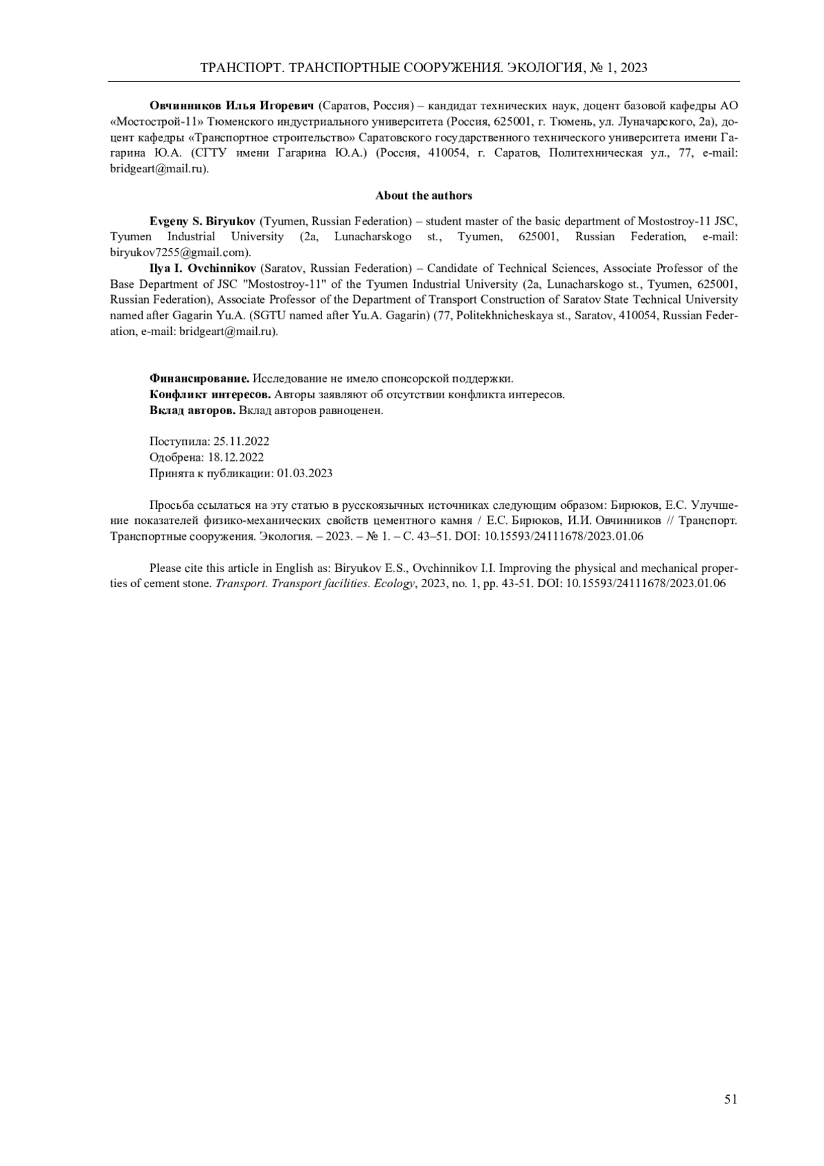 2. Бирюков Е.С. Абышев А.С. Приёмы повышения долговечности дорожных и мостовых конструкций // Новые технологии - нефтегазовому региону: материалы международной научно-практической конференции студентов, аспирантов и молодых ученых: в 2 т. - Т. 2 / отв. ред. Н.В. Гумерова. - Тюмень: ТИУ, 2021 - 275 с.