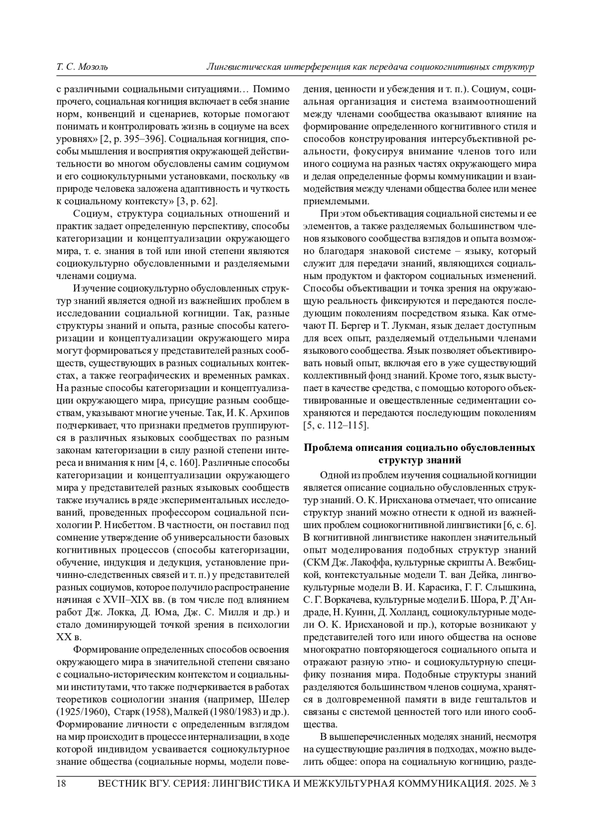 6. Ирисханова О. К. Социокогнитивная лингвистика : структуры социальных знаний и проблемы их описания // Вопросы когнитивной лингвистики. 2014. № 4 (041). C. 5-17.