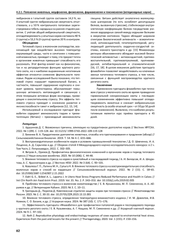 Ключевые фразы: препарат флавобетин, коровы, тепловой стресс, воспроизводительная функция, оплодотворяемость, эмбриональная смертность