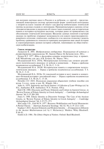 4. Медушевский Н.А. 2019б. Историческая память в современном политологическом дискурсе. - Теории и проблемы политических исследований. Т. 8. № 3A. С. 5-14. EDN: YHQNZU