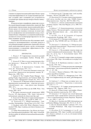 15. Панягин А. А. Бизнес-коммуникации в немецком деловом социуме // Вестник Мордов. ун-та. 2008. № 3. С. 64-67.