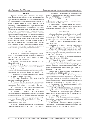4. Андреева В. Н. Психолингвистические модели функционирования памяти при синхронном переводе // Вестник Рос. гос. ун-та им. И. Канта. 2007. № 2. С. 16-21.