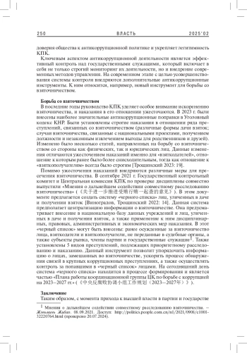 8. Трощинский П.В. 2021. Конституционно-правовые основы институционализации противодействия коррупции в КНР. - Журнал зарубежного законодательства и сравнительного правоведения. Т. 17. № 6. С. 78-90. DOI: 10.12737/jflcl.2021.06 EDN: AGDDDM