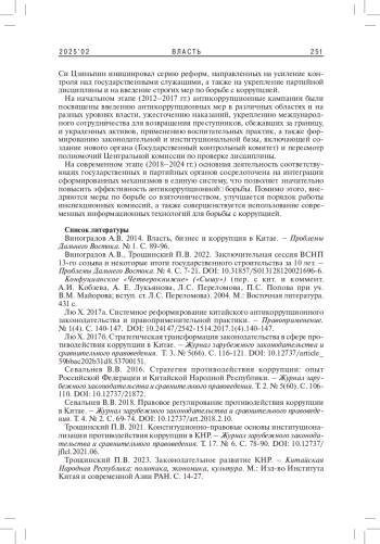 1. Виноградов А.В. 2014. Власть, бизнес и коррупция в Китае. - Проблемы Дальнего Востока. № 1. С. 89-96. EDN: RZJRAV