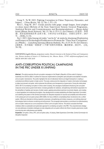 10. Gong T., Tu W. 2022. Fighting Corruption in China: Trajectory, Dynamics, and Impact. - China Review. Vol. 22. No. 2. P. 1-19.