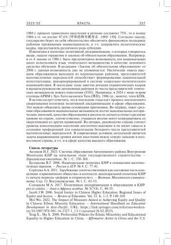 4. Солощева М.А. 2017. Позитивная дискриминация в образовании в КНР: pro et contra. - Азия и Африка сегодня. № 5(718). С. 49-55. EDN: YPLGLH