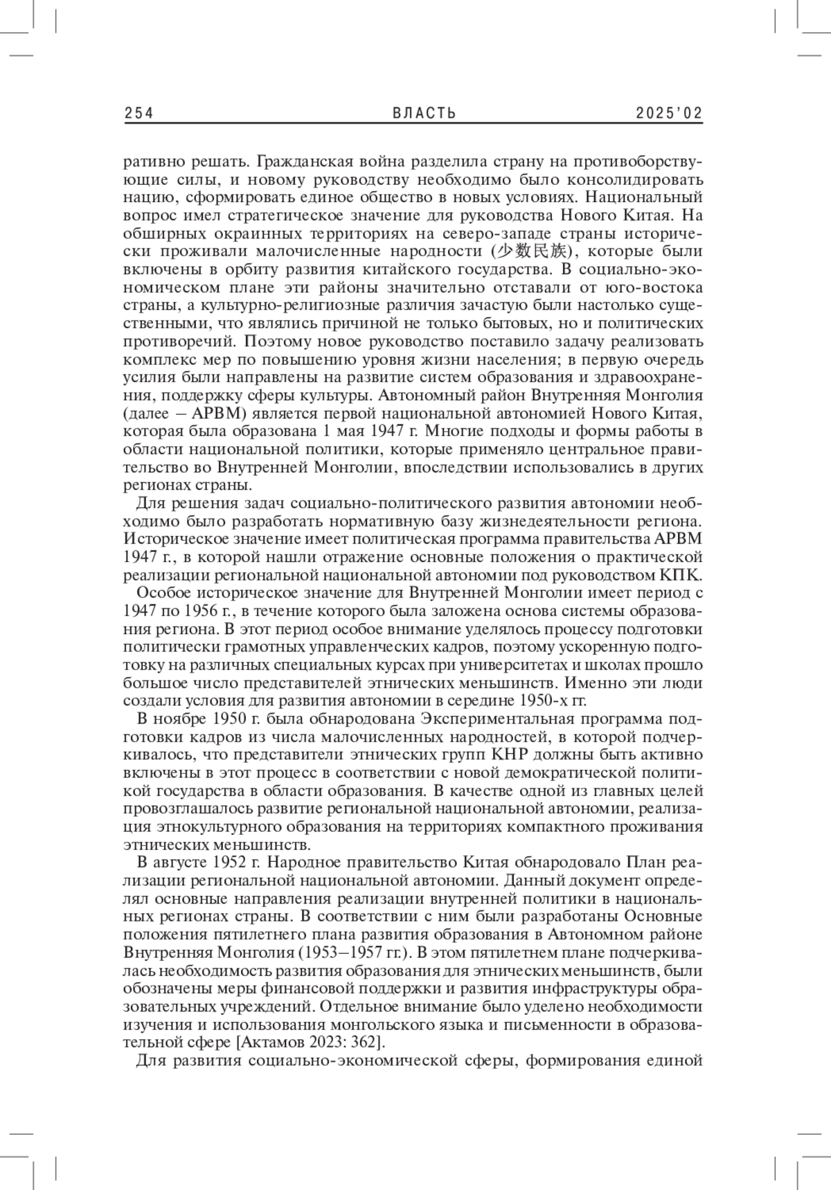 1. Актамов И.Г. 2023. Система образования Автономного района Внутренняя Монголия КНР на начальном этапе государственного строительства. - Евразийский ежегодник. № 1. С. 358-368. EDN: JVYBFH
