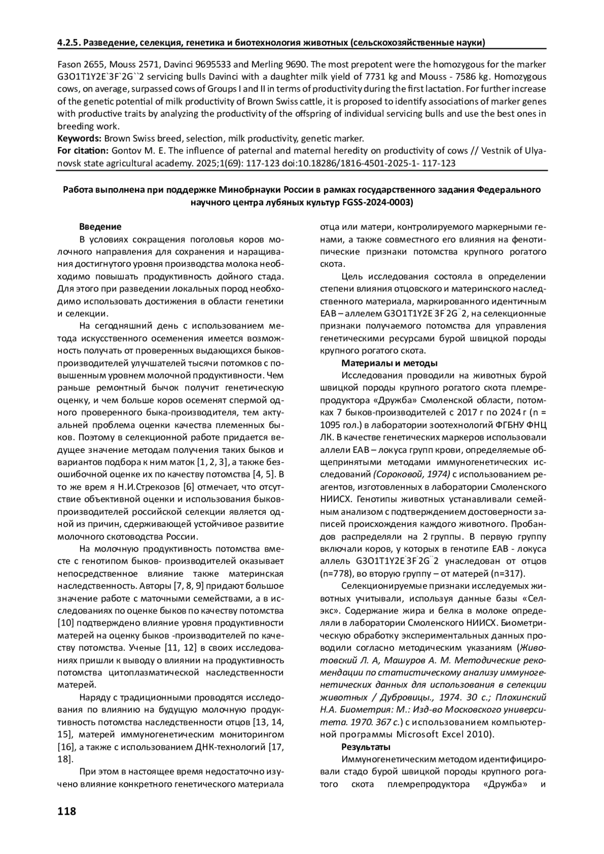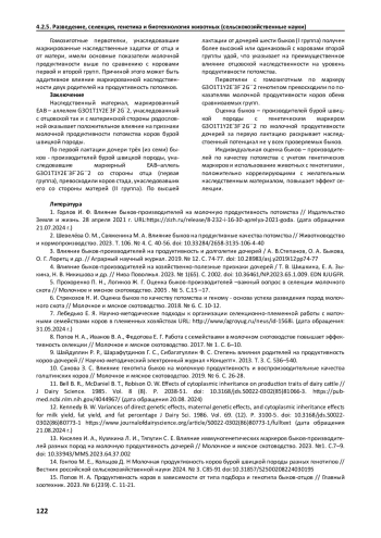 14. Гонтов М. Е., Кольцов Д. Н Молочная продуктивность коров бурой швицкой породы разных генотипов // Вестник российской сельскохозяйственной науки 2024. № 3. С85-91. DOI: 10.31857/S2500208224030195 EDN: YVTPXO